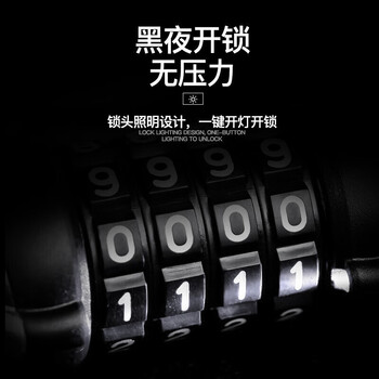 运动户外---骑行运动---自行车配件yaphtes自行车锁带灯光密码锁防盗山地车锁通用单车磨砂钢缆锁LED夜光锁