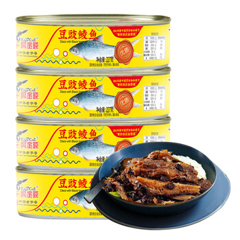 鹰金钱 豆豉鲮鱼罐头227g*4罐国产海鲜方便罐头即食下饭菜中华老字号