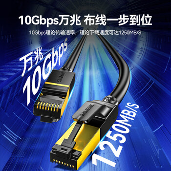 山泽(SAMZHE) CAT-7005H 工程级七类CAT7类纯铜镀金双屏蔽超高速网络跳线 成品网线 黑色0.5米 × 1
