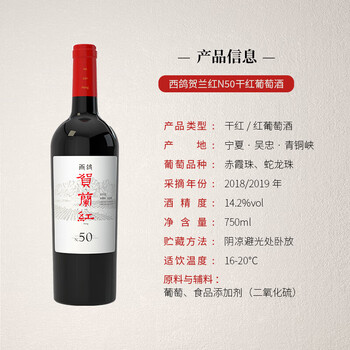 贺兰红3556(原N50)西鸽干红葡萄酒礼盒750ml 宁夏贺兰山红酒微醺送礼