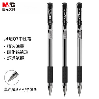 晨光(M&G)文具Q7/0.5mm黑色中性笔 子弹头签字笔 拔盖碳素笔 办公用水笔 12支/盒