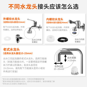 净水机1台(含滤芯);说明书1本;合格证1张 滤瓶扳手1把;内外牙转接头1个; 万能接头1个;切换开关密封垫1个; 转换接头密封垫1个