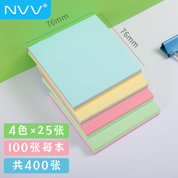 NVV便利贴粘性便签纸 400张76*76mm标签贴纸 备忘留言纸记事贴N次贴便条纸文具办公用品BL-01 4本装