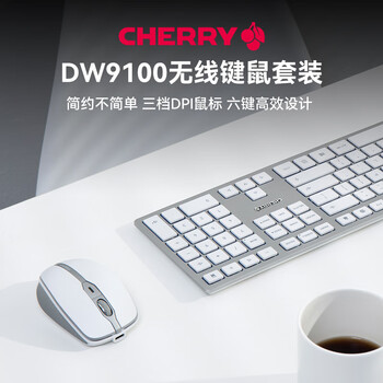 CHERRY樱桃 DW9100无线键鼠套装 无线蓝牙双模键盘鼠标 电脑键盘 办公商务 SX剪刀脚超薄键盘 充电款黑色