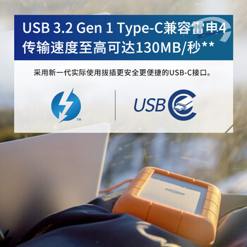 LaCie雷孜小金刚 移动硬盘 三防 1TB Rugged Mini 机械硬盘USB Type-C/USB3.2 兼容mac 便携防跌 外接