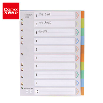 齐心(Comix) 10色装A4十色分页索引纸11孔PP隔页标签 办公用品EX8902