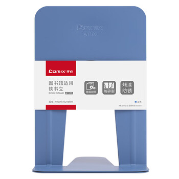 齐心9英寸金属铁桌面书立置物架书收纳桌上书架 办公书靠2片 办公学习用品 蓝 A1100