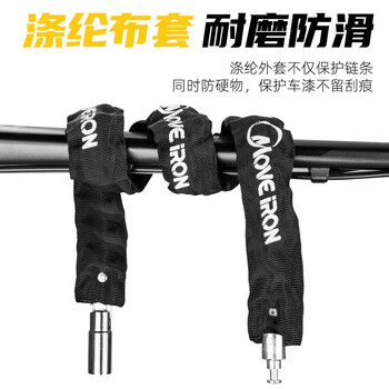Move iron 自行车锁电动车链条锁山地车摩托车防盗链锁加长布套链子锁防盗锁自行车配件装备 黑色