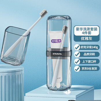 易旅旅行洗漱套装刷牙杯漱口收纳盒洗漱杯 可拆2口杯+牙膏+牙刷 4件套