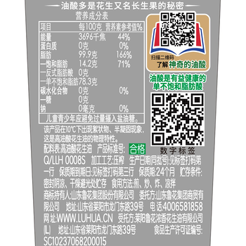 鲁花 【保真花生油】食用油 5S 物理压榨 高油酸花生油750ml