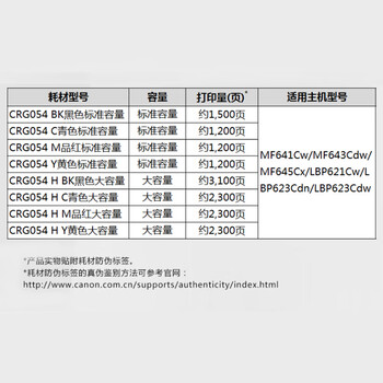 佳能原装CRG-054硒鼓M品红色碳粉适用MF641/643Cdw打印机耗材MF645Cx/LBP621Cw/623Cdn/623Cdw墨盒商用办公