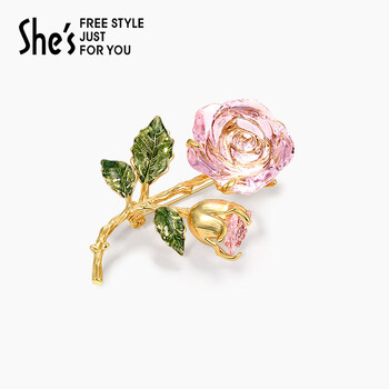 She's茜子冰雪秘境玫瑰花朵胸花滴油女士胸针别针生日礼物送女友