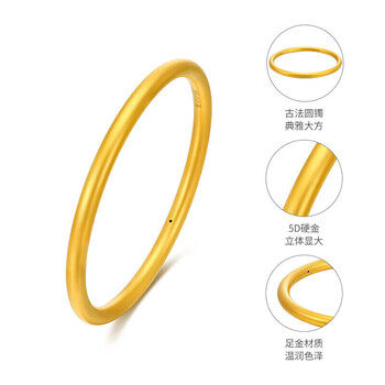 梦金园黄金手镯足金素圈手镯硬金古法传承固口经典女款