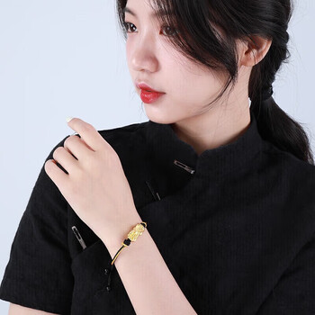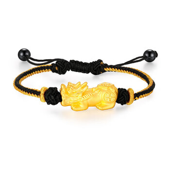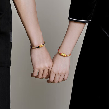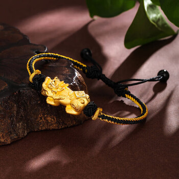 梦金园黄金转运珠足金3D硬金福字貔貅路路通手链手绳母亲节礼物