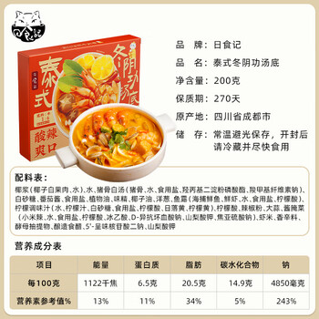 日食记火锅底料200g泰式椰香冬阴功汤料酸辣汤酱包关东煮汤料海鲜调料包