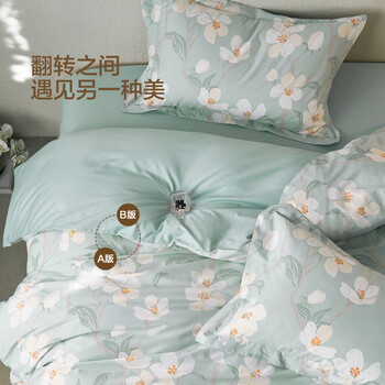 水星家纺四件套床上纯棉100%全棉透气被套床单双人1.5米x2米床风沐花意家居馆