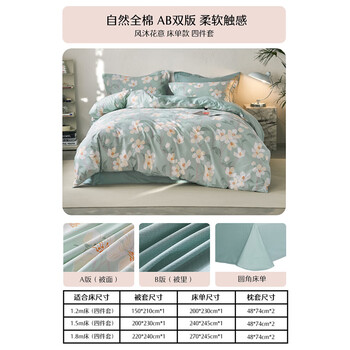 水星家纺四件套床上纯棉100%全棉透气床单被套宿舍学生1.2m床家居馆