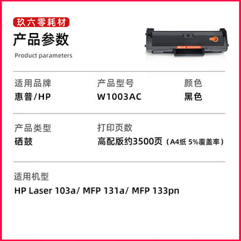 玖六零W1003AC硒鼓适用惠普HP103a硒鼓MFP 131a 133pn Printer打印机硒鼓W1003ac墨粉盒 HP103a硒鼓 大容量