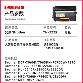 玖六零TN2225粉盒适用兄弟MFC7360粉盒DCP7057 HL2240d 7470d打印机硒鼓TN2215墨盒7060d FAX2890 DR2250碳粉盒套装