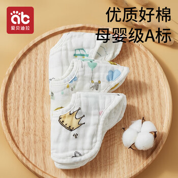 爱贝迪拉(AIBEDILA)口水巾围嘴婴儿纯棉8层纱布口水兜360°可旋转吸水围兜 印花3条