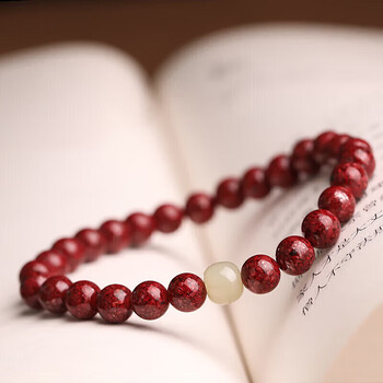 豆蔻时光原矿透光晶体朱砂手串高含量本命年和田玉转运珠手链男女6mm