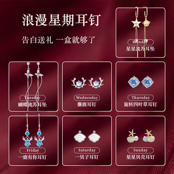 缔晶一周耳钉女银耳环耳坠长款流苏耳饰礼盒生日礼物520情人节送女友
