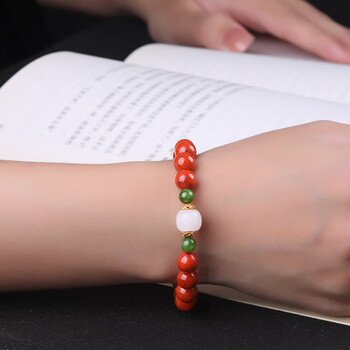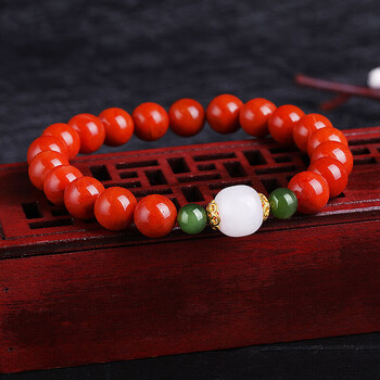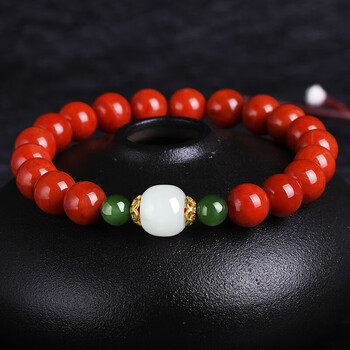 豆蔻时光8-9mm凉山南红玛瑙手串碧玉转运珠水晶手链男女士款