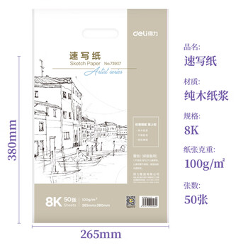 得力(deli)8K/50张素描纸美术生绘画涂鸦素描纸全木浆绘画纸女孩涂色绘画儿童礼物