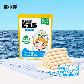 窝小芽深海鳕鱼肠原味 儿童零食0添加防腐剂 享婴幼儿宝宝食谱80g/8根