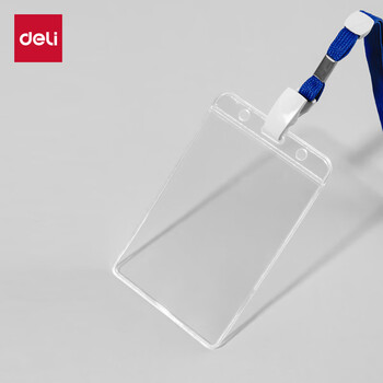 得力(deli)50只卡套+50根挂绳大尺寸竖式工作牌硬质校园卡证件卡套工牌门禁地铁学生办公胸牌卡套5757