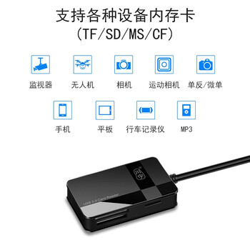川宇USB3.0 80cm线长 TF/SD/CF/MS卡多功能合一高速读卡器单反相机手机行车记录仪内存卡