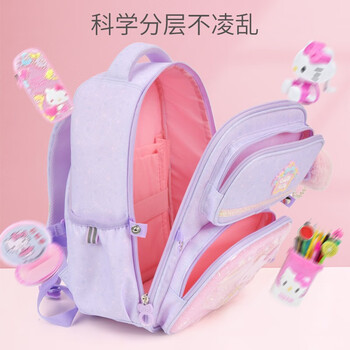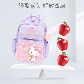 凯蒂猫(HELLO KITTY)小学生书包女1-3年级儿童书包大开口轻便3D浮雕卡通kT双肩背包 KT0160B(紫色)