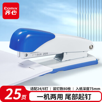 齐心(COMIX)25页12#舒适订书机+起钉器(一机两用)自带起钉器 适用订书钉24/6、26/6 颜色随机B2994