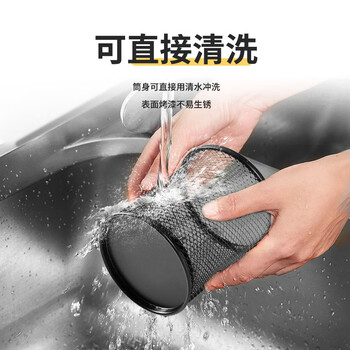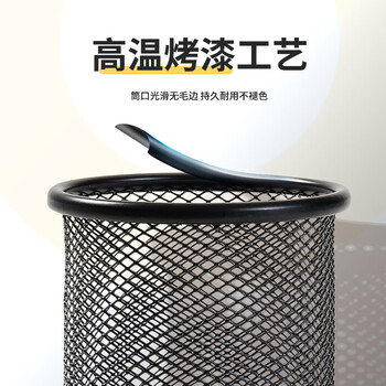 齐心(COMIX)金属网纹圆形笔筒办公收纳 黑色金属简约创意桌面收纳盒 办公文具工具B2259