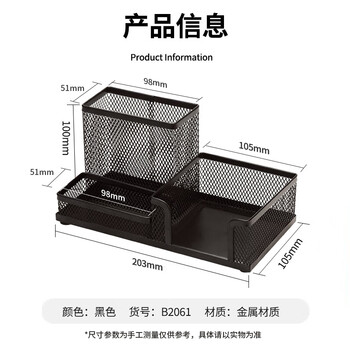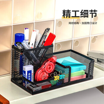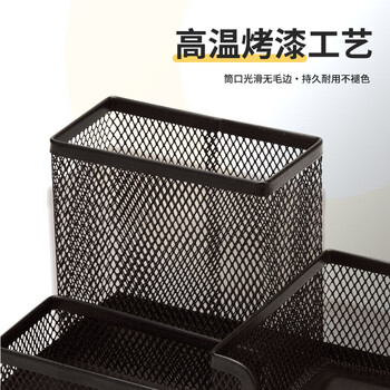 齐心(COMIX)经典金属网格笔筒多功能三合一收纳盒 三格办公桌面收纳盒摆件 办公用品 黑色EB711