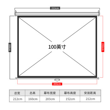 宏信(HONXIN) 100英寸4:3手动自锁投影仪幕布 投影机幕布 高清白塑幕布(适用爱普生明基松下等办公投影仪)