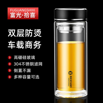 富光拾喜玻璃杯双层玻璃水杯家用茶杯男女士办公杯带过滤杯子