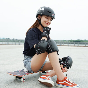 斐乐FILA专业滑板自行车护具成人儿童刷街专业滑板护具 黑色 M码