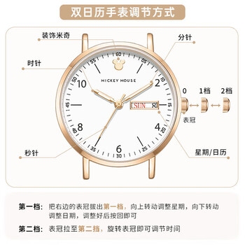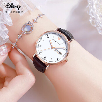 迪士尼(Disney)女士手表时尚双日历少女腕表初中高中学生考试手表女生日开学礼物