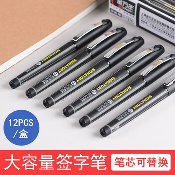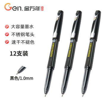 金万年黑色1.0mm-中性笔拔帽 子弹头商务办公学生铁夹大容量 签字笔 水笔 12支装G-1216-001