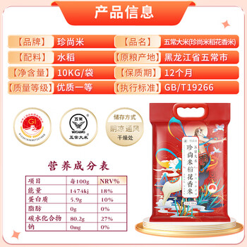 珍尚米稻花香米 五常大米10kg东北大米20斤 稻香米2号真空包装 当季新米