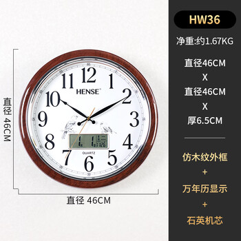 汉时(Hense)挂钟客厅挂墙时钟创意现代简约挂表家用石英钟表HW36万年历46cm