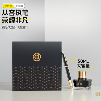 英雄(HERO) 钢笔 礼盒 荣耀系列 商务送礼日常书写男女办公签字笔墨水套装 黑色