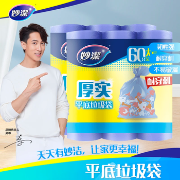 妙洁平口垃圾袋蓝色50*60cm120只单面0.9丝点断式大号新老包装随机发