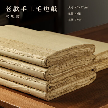 漢墨竹浆手工毛边纸 夹江无格毛笔书法练习元书纸 文房四宝超薄蝉翼半生熟纸40张