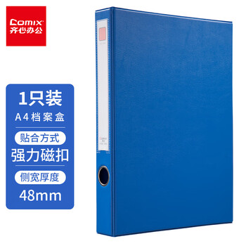 齐心(COMIX)35mm档案盒 A4文件盒 磁扣式资料盒 蓝色 办公文具 A1296