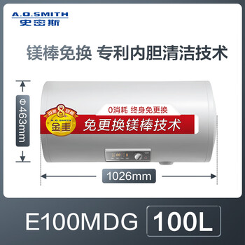 史密斯(A.O.SMITH)金圭电热水器100升MDG 大水量 免换镁棒 专利内胆清洁技术 双棒速热