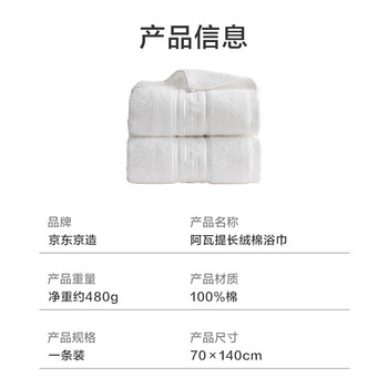 居家布艺---毛巾/浴巾/浴袍---浴巾京东京造京东京造 国标A类 新疆长绒棉浴巾480g 全棉浴巾加厚柔软 阿瓦提浴巾 白色单条装