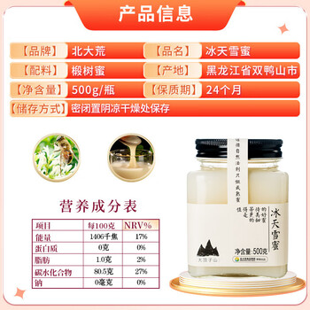 北大荒 东北黑蜂 冰天雪蜜 椴树成熟蜜 纯蜂蜜500g 玻璃瓶装*1