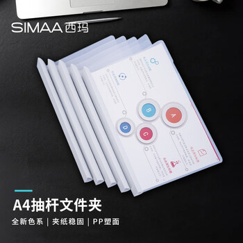 西玛(SIMAA)5只 A4透明拉杆夹/抽杆夹/报告夹/文件夹 25mm大背宽简历报告夹 学生考试收纳 白色6151